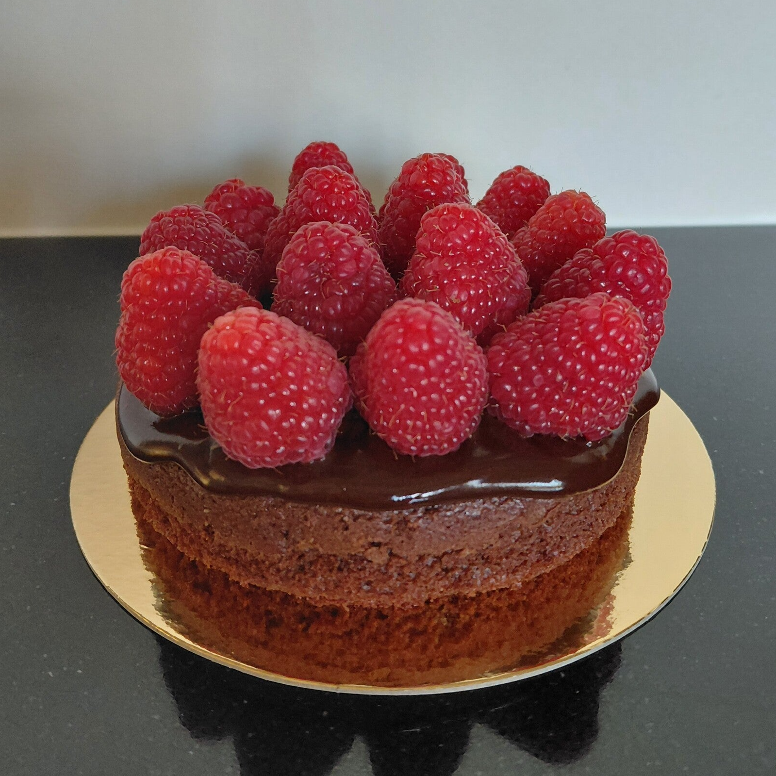 Chocoladecake met frambozencoulis en chocoladefrosting